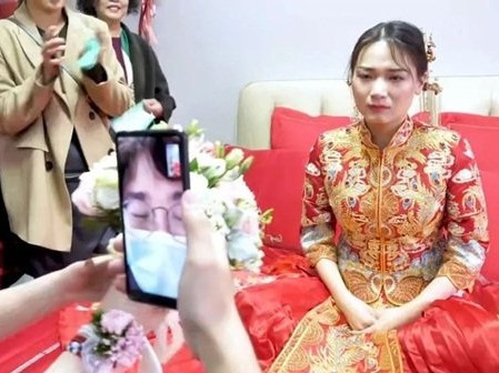 Cô dâu khi biết tin đã bất lực bật khóc nhưng vì lễ cưới không thể hoãn lại nên cô vẫn đến nơi tổ chức đám cưới một mình.