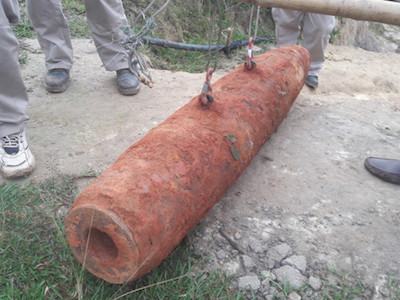 Một quả bom 'khủng' nặng 266 kg vừa được cơ quan chức năng cất bốc, xử lý từ nguồn tin báo của người dân khi họ phát hiện quả bom trong lúc đang đào đường.