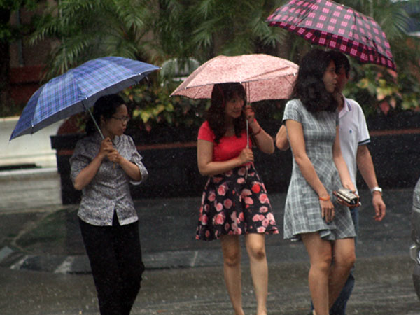 Đúng 12 giờ trưa ngày 12/5 một trận mưa rào lớn bất ngờ đổ xuống Hà Nội, đây là thời điểm nghỉ và ăn trưa của dân công sở nên nhiều người tìm mọi cách đối phó để đến điểm ăn uống.
