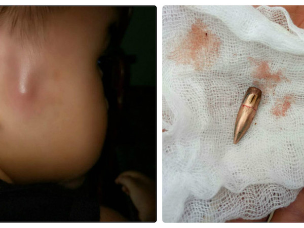 Đang ngồi trong lớp, cháu bé bị đạn rơi trúng đầu