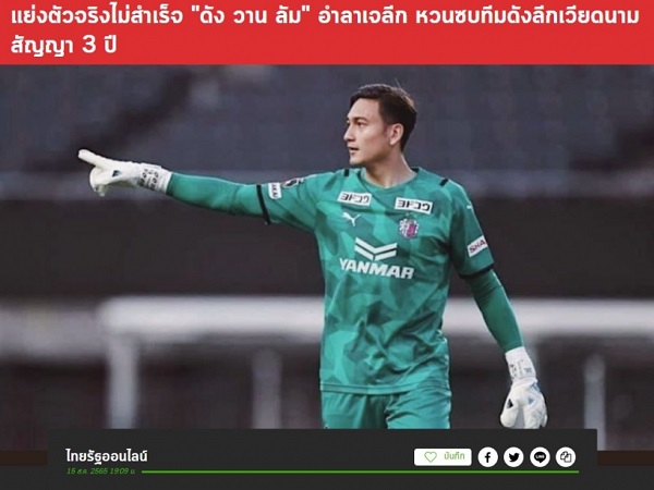 Tờ MGR Online của Thái Lan bất ngờ dùng những lời lẽ nặng nề khi viết về thủ thành Đặng Văn Lâm vốn đang gặp khó khăn tại Nhật Bản và không được triệu tập lên tuyển Việt Nam.