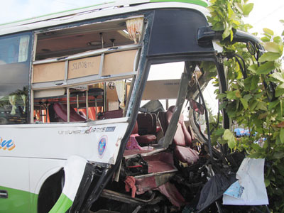 Chiều 24.9, Ban An toàn giao thông (ATGT) tỉnh Bến Tre thông tin thêm về vụ tai nạn giao thông nghiêm trọng giữa xe khách và xe container tại Km19+600 (QL60, ấp Tân Phong 1, xã Thanh Tân, H.Mỏ Cày).