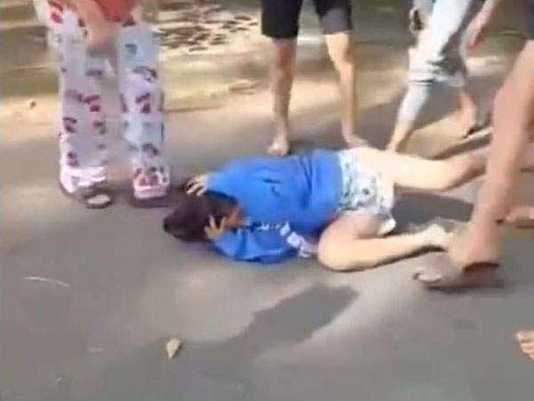 Theo hình ảnh từ clip ghi lại và phát tán trên mạng xã hội, bé gái chở bạn trên xe đạp điện bị nhóm người chặn lại và lao tới đánh tới mức nằm giữa đường ôm đầu chịu trận. Người bạn đi cùng vào can ngăn cũng bị đánh.