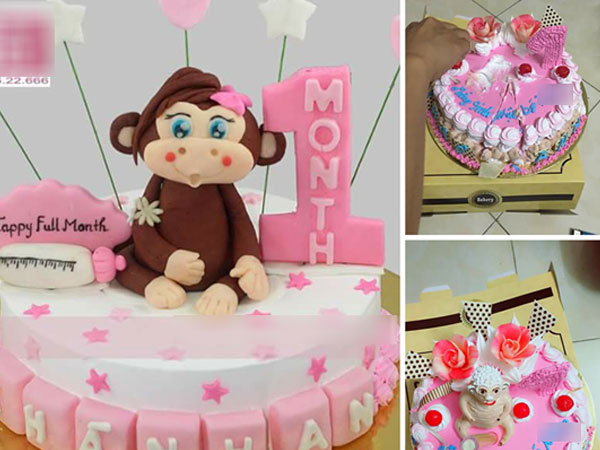 Sản phẩm nhận được có hình thức khác xa với mẫu bánh trước đó lấy trên mạng mà khách muốn đặt.