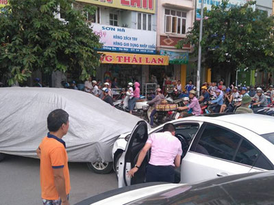 Chiếc ô tô vừa mua trong showroom trên đường Yên Lãng, quận Đống Đa, Hà Nội đi ra thì người điều khiển bất ngờ đạp nhầm chân ga khiến chiếc xe này lao qua đường, bay lên dải phân cách rồi đâm liên tiếp 3 xe ô tô khác.