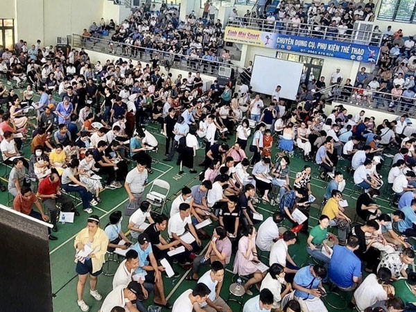 Từ sáng sớm, nhiều người đã tập trung tại nhà thi đấu huyện Hoài Đức (Hà Nội) để tham gia đấu giá 19 thửa đất thuộc xã Tiền Yên. Có người từ tỉnh khác đi từ 4-5h sáng, chờ đến giờ vào đấu giá.