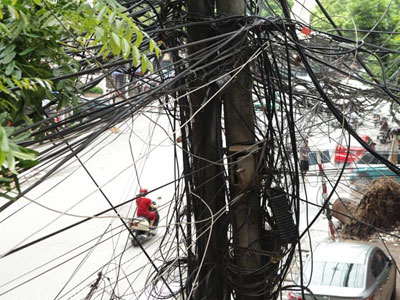 Dây điện, cáp viễn thông chằng chịt khắp Hà Nội