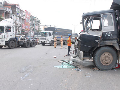 Chiếc xe tải mất lái ủi văng dải phân cách, tông đổ trụ điện chiếu sáng, làm gãy một biển báo rồi tông vào một xe kéo rơ- mooc đi theo chiều ngược lại, tài xế mắc kẹt trong buồng lái được người dân đưa ra ngoài.