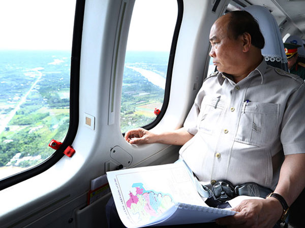 Chiều 26/9, Thủ tướng Nguyễn Xuân Phúc đã thị sát vùng Đồng bằng sông Cửu Long bằng máy bay trực thăng.