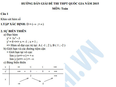 Gợi ý lời giải môn Toán THPT Quốc gia
