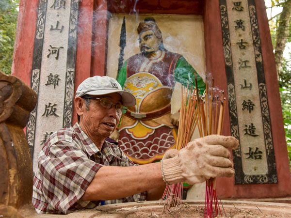 Dù Ban quản lý di tích Đền Hùng nhắc nhở nhưng nhiều du khách vẫn đốt cả bó hương khi về dự lễ giỗ Tổ các vua Hùng 2018.