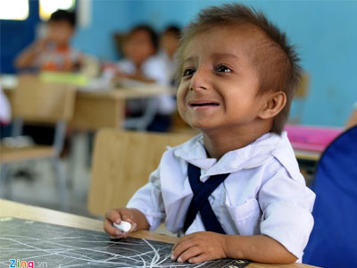 Lớp học của bé tí hon 8 tuổi nặng hơn 3 kg
