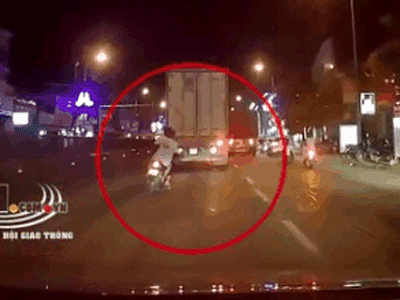 Phóng nhanh vượt ẩu, 2 thanh niên húc mạnh đuôi xe tải, nằm bất động giữa đường