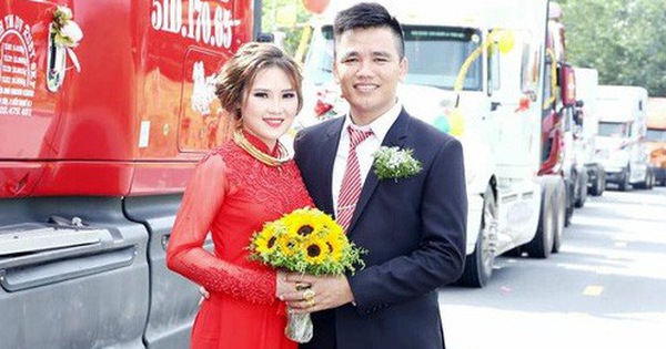 9 chiếc xe đầu kéo xếp thẳng hàng vượt 70 km đi rước dâu, gây bất ngờ ở Bình Dương.