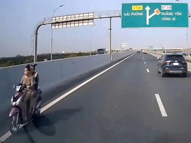 Ngang nhiên đi xe máy ngược chiều với tốc độ cao trên cao tốc Hải Phòng - Móng Cái, hai thiếu nữ cùng người giao xe vừa bị CSGT xử phạt 16,5 triệu đồng.