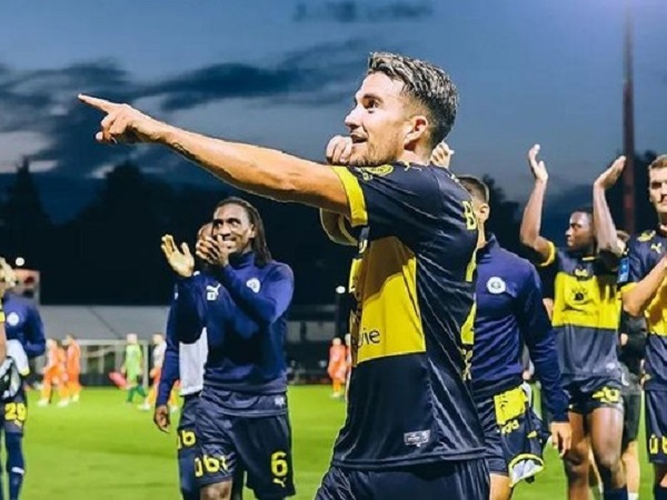 HLV Pau FC vui mừng khi Quang Hải cùng đồng đội có điểm số đầu tiên