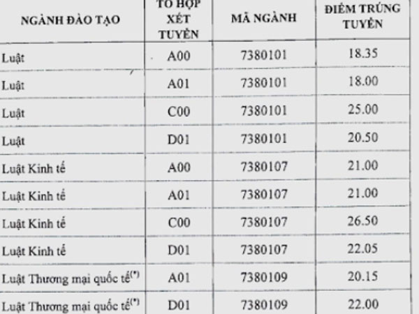 Điểm chuẩn 2018 của ĐH Luật Hà Nội dao động từ 18 đến 26,5 điểm.