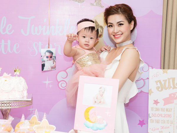 Á hậu Việt Nam 2014 tổ chức buổi tiệc ấm cúng tại nhà riêng, mừng bé Julia tròn 1 tuổi.
