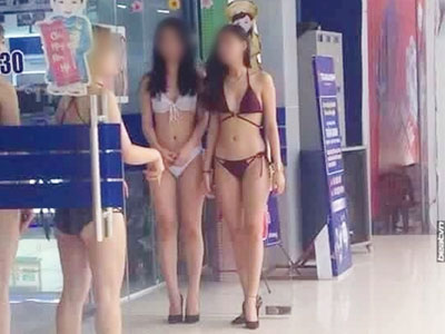 Các cô gái trẻ mặc bikini đứng tiếp thị sản phẩm tại siêu thị điện máy nổi tiếng ở Hà Nội