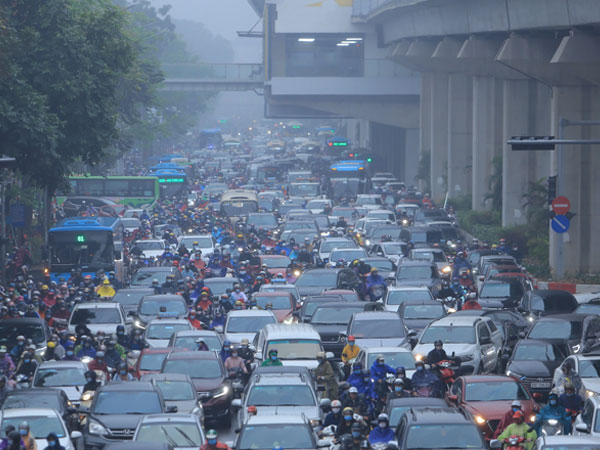 Ảnh: Hà Nội mưa rả rích, trời mịt mù ngỡ như ở Sa Pa, người dân vật lộn đi làm cùng 'đặc sản' tắc đường