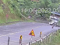 Xe máy di chuyển với tốc độ cao khi xuống dốc ở Tam Đảo (Vĩnh Phúc), khi qua khúc cua đâm vào hộ lan, 2 cô gái bay ra khỏi xe khiến người chứng kiến thót tim.
