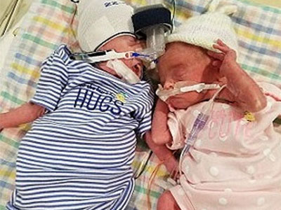 Kỳ diệu cặp song sinh chào đời cách nhau hơn 1 tháng