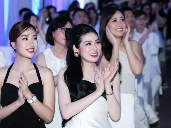 Tất cả khách mời show Noo Phước Thịnh diện đồ màu trắng, trong khi Đỗ Mỹ Linh một mình một kiểu với tông đen.