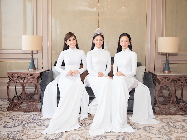 Hoa hậu Mỹ Linh, Tiểu Vy, Lương Thùy Linh, á hậu Phương Nga - Thúy An... cùng khoe sắc trong tà áo dài trắng tinh khôi.