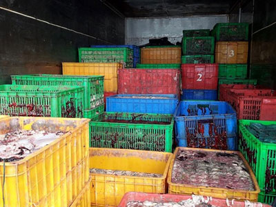Khi các tài xế đang trút phế phẩm nội tạng động vật hôi thối cho chủ bè đổ xuống sông làm thức ăn cho cá thì bị lực lượng chức năng ập đến bắt giữ.