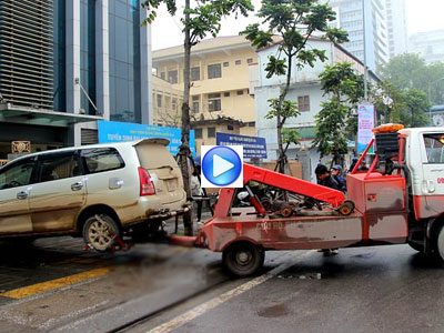 Sáng nay, lực lượng chức năng phường Láng Hạ, quận Đống Đa (Hà Nội) đã lập biên bản, cẩu xe ô tô bất chấp lệnh cấm vẫn cố tình đỗ trên vỉa hè.