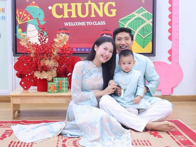 Vợ chồng Văn Hậu chụp ảnh kỷ niệm 2 năm ngày cưới.