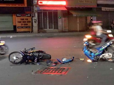 Hai cặp trai gái chạy môtô tông nhau tại giao lộ Lũy Bán Bích – Thoại Ngọc Hầu (TP.HCM) khiến một chiếc nát đầu, cặp trai gái trên xe này phải nhập viện.