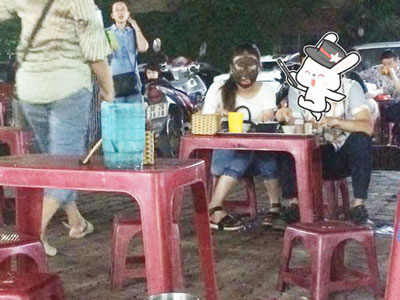 Làm cho chị em được phen cười “bể bụng”, thế nhưng cô nàng vẫn bị “ném đá” cho tơi bời vì đắp mặt nạ đen xì nhìn "hết cả hồn" đi ăn ốc ngoài vỉa hè cùng bạn.