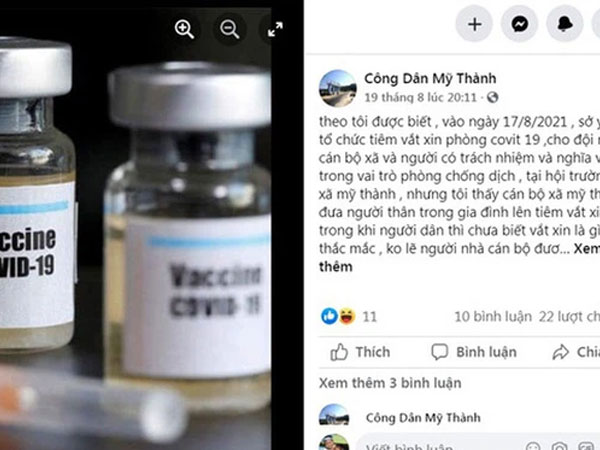 Lãnh đạo xã Mỹ Thành ưu ái mời 20 người thân cán bộ, trong đó có "chồng bí thư, vợ chủ tịch" tiêm vắc xin Covid-9 dù không thuộc đối tượng ưu tiên.