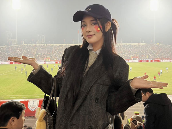 Mặc đồ đơn giản đi xem bóng đá, nàng WAG vẫn được cầu thủ ĐT Việt Nam khen hết lời.