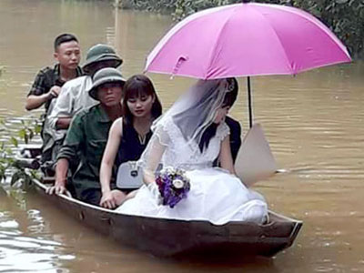 Lũ lớn, chú rể rước dâu bằng thuyền