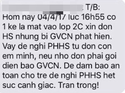 Sau tin nhắn cảnh báo về "kẻ lạ mặt" đòi đón học sinh lớp 2 trường tiểu học Thanh Liệt, huyện Thanh Trì, Hà Nội khiến phụ huynh xôn xao, Công an huyện đã vào cuộc xác minh sự việc.