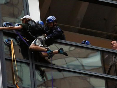 Một người đàn ông đã bị cảnh sát khống chế khi cố gắng leo lên Tháp Trump tại New York, Mỹ hôm 10/8 để ủng hộ ứng viên tổng thống đảng Cộng hòa.