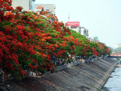 Hơn 300 cây phượng có đường kính lớn vừa được trồng trên dải phân cách các tuyến đường như Xã Đàn, Láng Hạ, Đại Cồ Việt, Lê Duẩn...