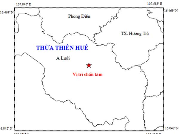 Ngày 18/11, Trung tâm Báo tin động đất và cảnh báo sóng thần (Viện Vật lý địa cầu) cho biết, một trận động đất với cường độ 3,3 độ richter vừa xảy ra trên địa bàn huyện miền núi A Lưới, tỉnh Thừa Thiên - Huế.