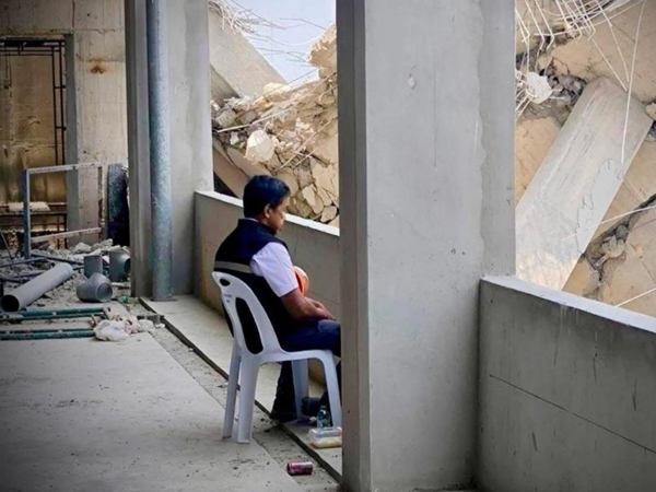 Bức ảnh người đàn ông ngồi thất thần nhìn toà nhà đổ nát sau trận động đất ở Bangok viral toàn mạng, phóng to cận cảnh bên dưới càng bất ngờ
