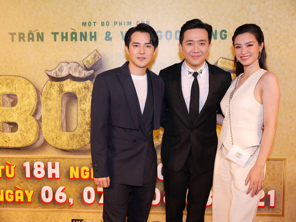 Dàn nghệ sĩ đình đám showbiz Việt đã đến chúc mừng Trấn Thành ra mắt Bố Già vào chiều qua (4/3).