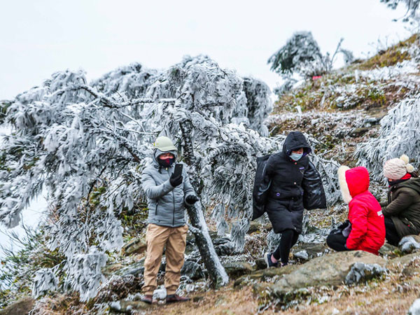Hàng ngàn du khách bất chấp rét buốt lên đỉnh Mẫu Sơn ngắm băng tuyết