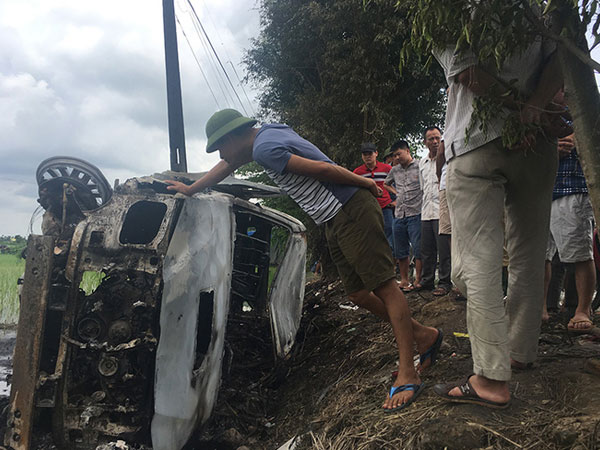 Ôtô Fortuner chở một giám đốc đi vào xã Hồng Lạc (Hải Dương) mua đồ gỗ thì bị đốt khi người dân nghi vấn 2 người trên xe đi thôi miên, bắt cóc trẻ em.
