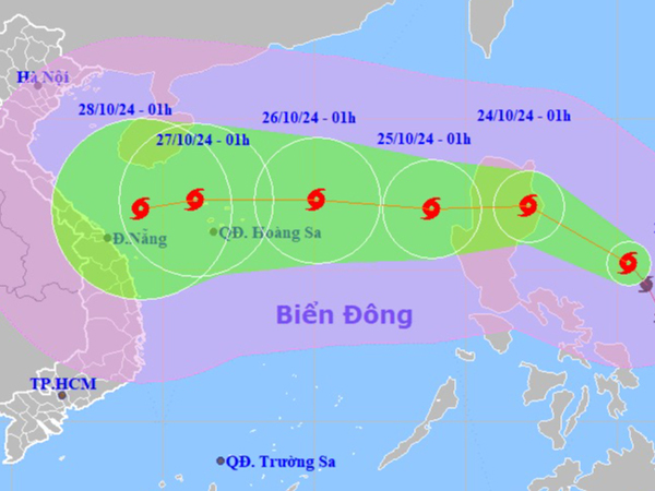 Bão Trami sẽ mạnh tới cấp 12, giật cấp 15, đang di chuyển rất nhanh 20 km/giờ, hướng vào Trung Bộ và sẽ gây mưa rất to, đe doạ ngập lụt.