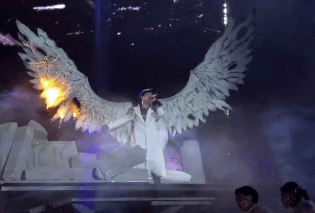 Tiết mục của Erik tại concert Đấu Trường Sấm khiến khán giả “hú vía” khi đôi cánh khổng lồ phía sau lưng bất ngờ bốc cháy giữa cao trào ca khúc .