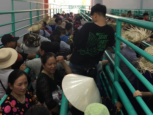 Vẫn biết dịp đầu xuân năm mới nơi đây thường tấp nập người đến nhưng không ngờ khung cảnh lại đông đúc như vậy. Ngay từ lối vào đã chật ních người. Không còn là cảnh dòng người bước đi mà thay vào đó là từng người chen chúc nhau mãi mới di chuyển được một bước.