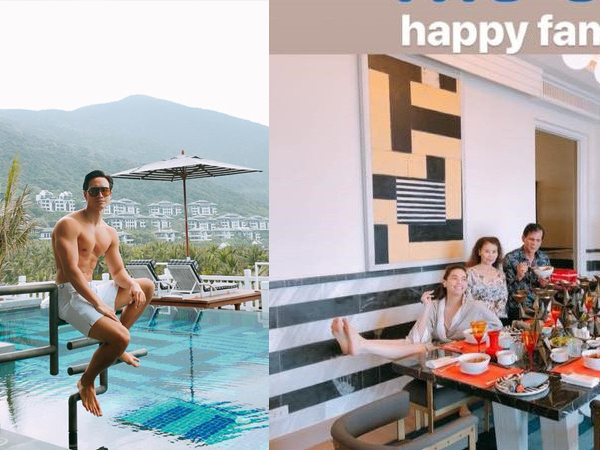 Kim Lý và Hồ Ngọc Hà cùng nhau chia sẻ những bức ảnh vui vẻ, thoải mái tại nơi nghỉ dưỡng ở Đà Nẵng trên trang cá nhân. Chuyến du lịch này nhận được nhiều sự chú ý hơn khi bố mẹ nữ ca sĩ cũng đi cùng.