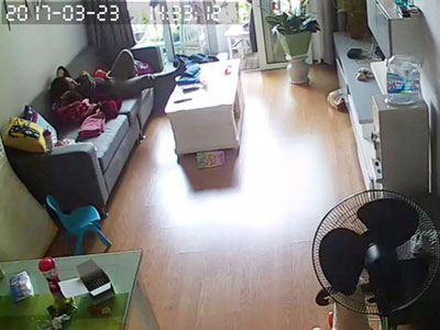 Camera quay lại được cảnh bà giúp việc vừa xem ti vi vừa cho trẻ ăn, thi thoảng bà lại giật tai, tát má em bé khiến chủ nhà khá bức xúc.