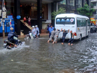 Công nhân trễ giờ làm vì triều cường dâng khắp Sài Gòn